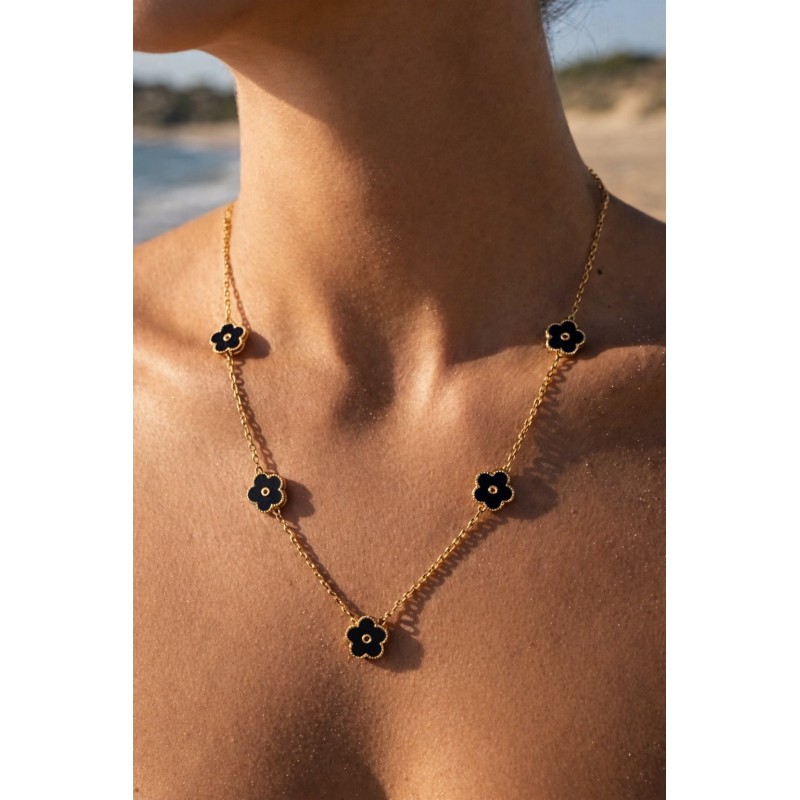 Colliers noir fleurs